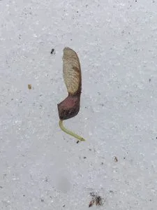Por esta y otras razones, la germinación del arce azucarero es lenta, no ocurriendo hasta la primavera siguiente cuando el suelo se ha calentado y el peligro de las heladas ha quedado atrás.